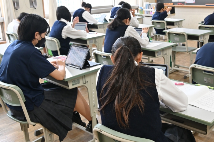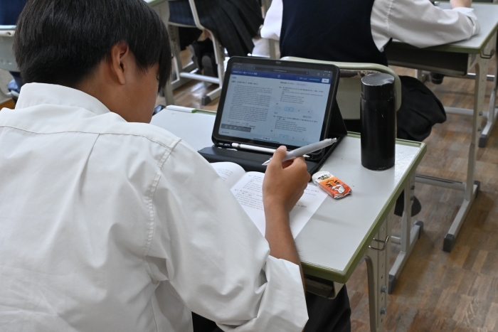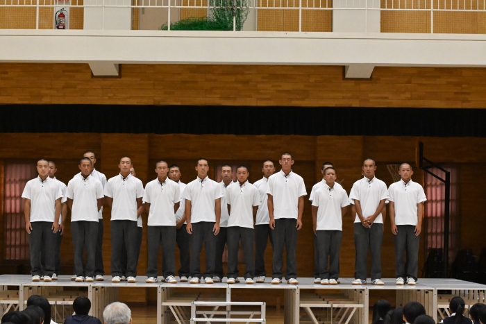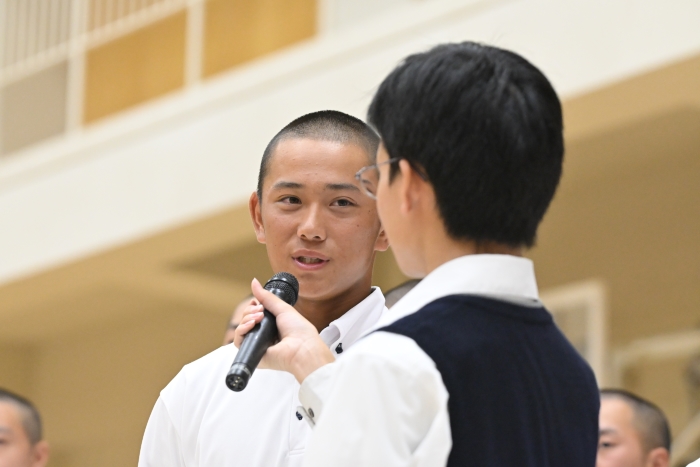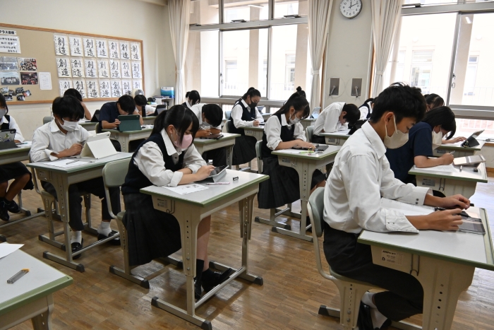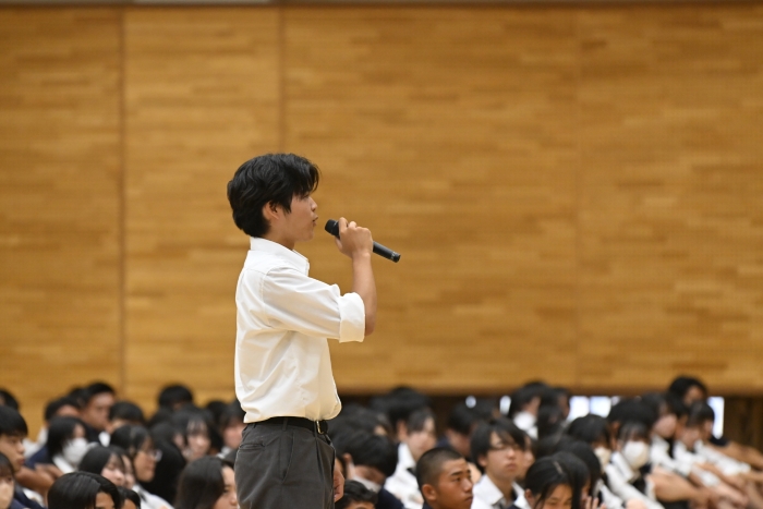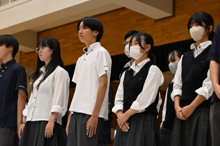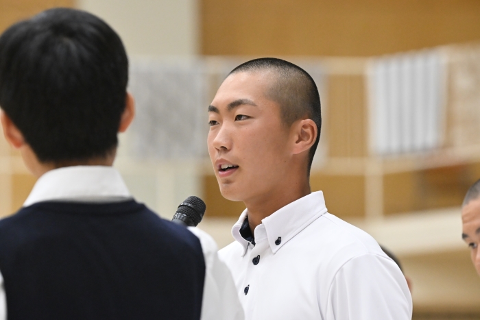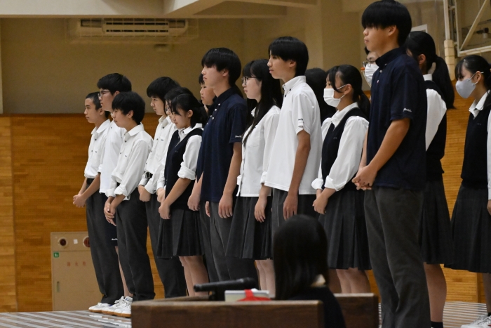 8月28日(木)、全校でアリーナに集まり、部活動全国大会の報告会と始業礼拝を行いました。 少林寺拳法部(中学・高校)、放送部、ボクシング部、かるた部、野球部の生徒が登壇し、全国大会出場の報告をしました。 夏休みの課題テストでは、タブレット上で解答するCBT(Computer Based Testing)に挑戦しました。1年生は初めてのWebテストに少し戸惑うこともありましたが、今後に役立つ体験ができました。