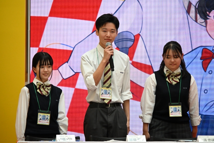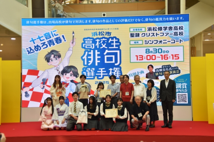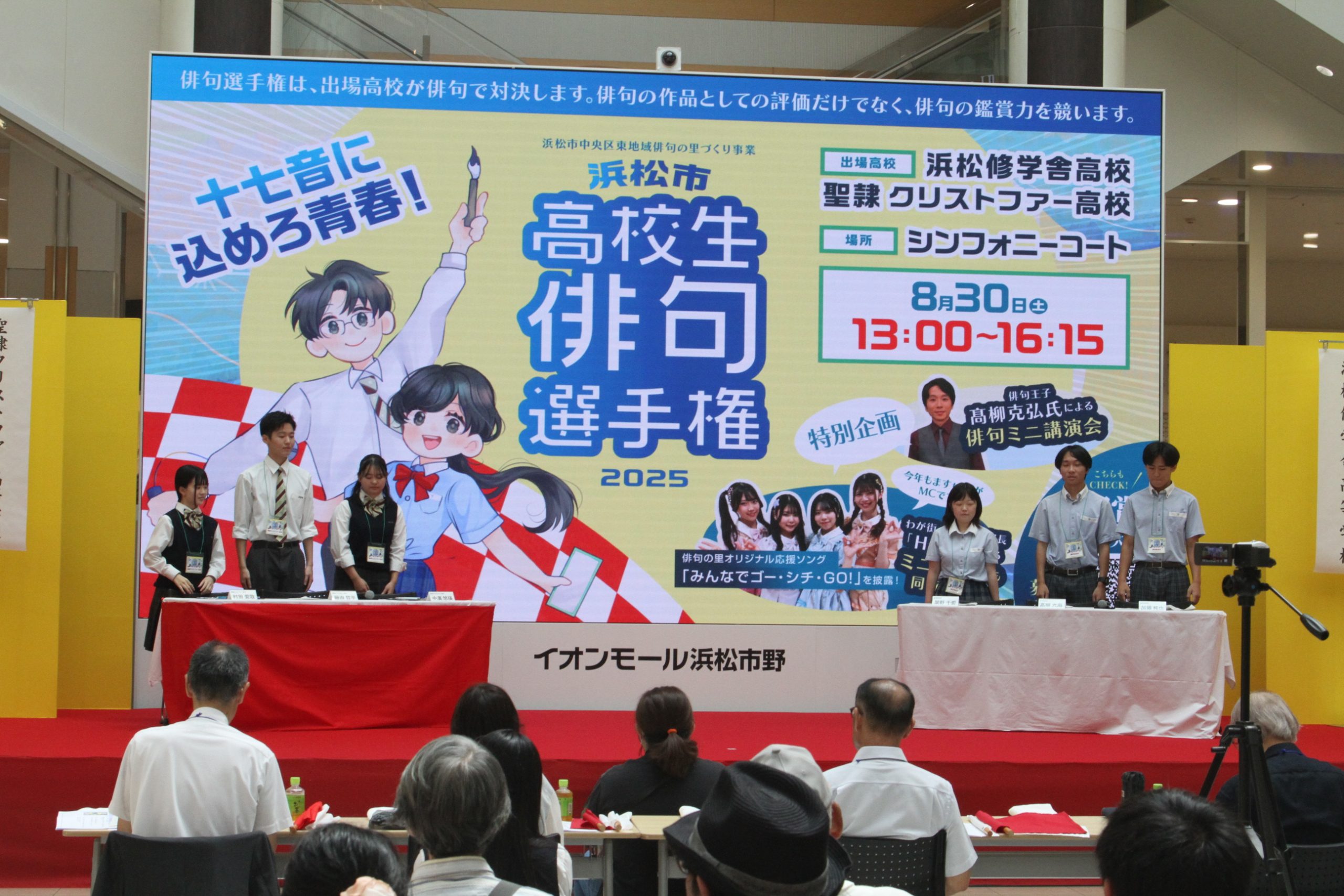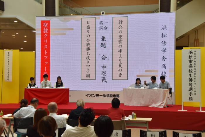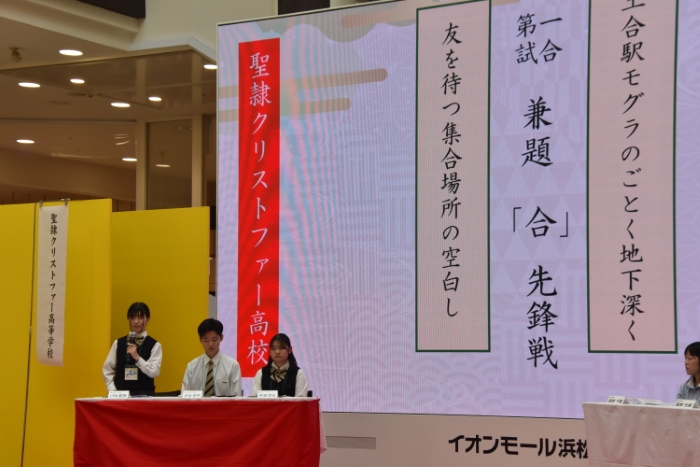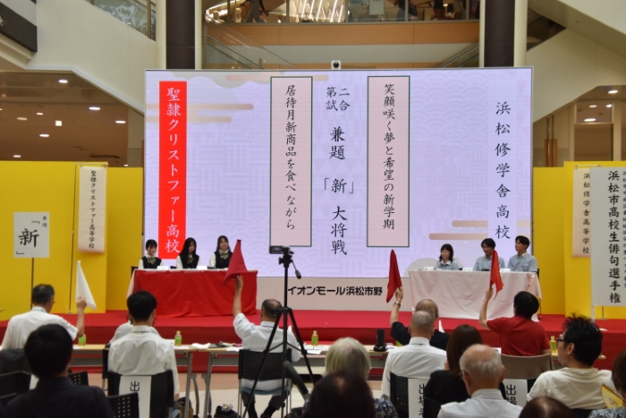 学校生活では口数が多くはない生徒が、舞台の上に立ち相手に質問をぶつけ、相手からの質問に毅然と答える姿にはたくましさを感じました。5人の審査員が1句ずつ判定を出し、最終的な旗の合計数は聖隷クリストファー高校21本、浜松修学舎高校9本で、本校が優勝を飾りました。