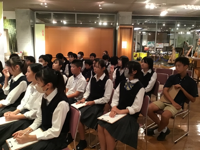 9月4日(木)、中学1年生は音楽の特別授業として浜松市楽器博物館で、博物館の見学とガムラン体験(インドネシアの打楽器)を行いました