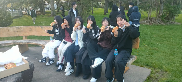 途中、公園でケイコさんが用意してくださったサンドウィッチをいただきました。想像していたよりもずっと冷え込み、みんな思わず身を寄せ合って食べました。