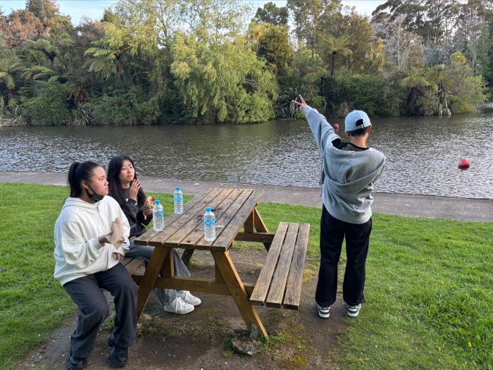 コーディネーターのケイコさんとガイさんが出迎えてくださいました。ケイコさんの明るい笑顔に、生徒たちの緊張も和らぎます。