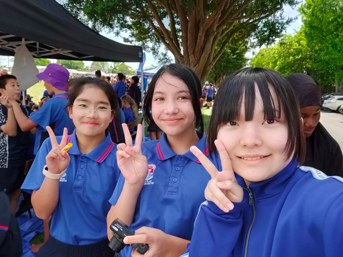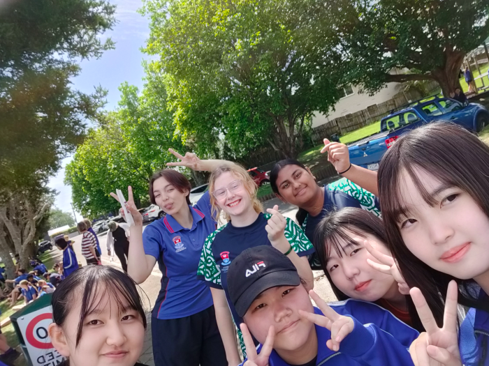 グラウンドは大歓声に包まれ、リレーメンバーはニュージーランドの生徒たちに囲まれて大盛り上がりでした。