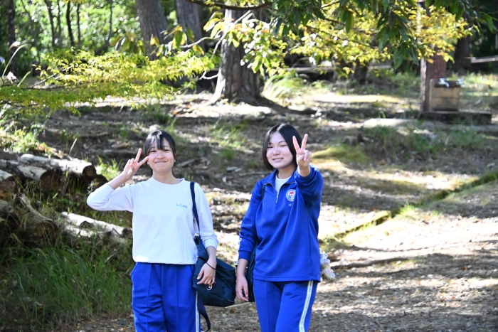 秋晴れの下、まさに野外活動日和の一日。中学生全員で「収穫感謝祭」を行いました。