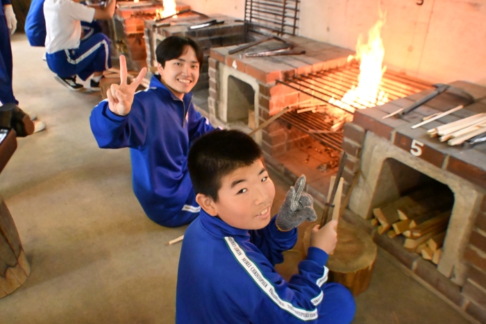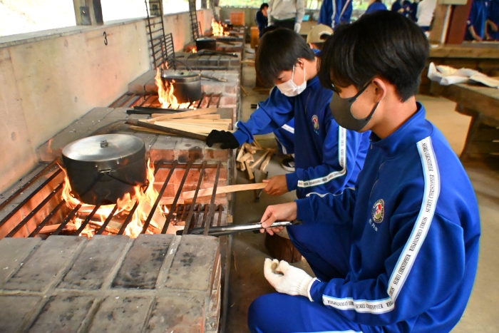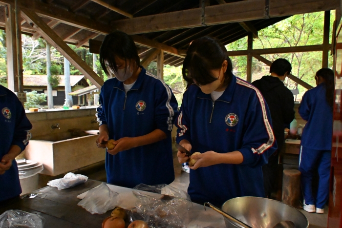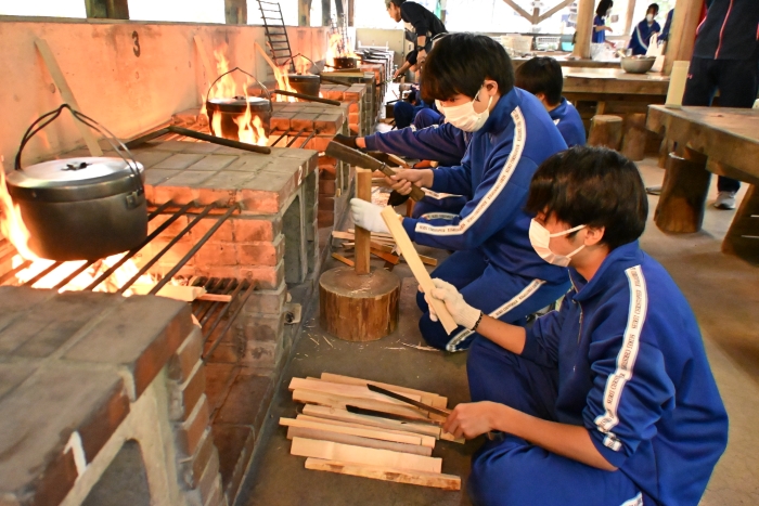 薪割り、火起こし、米とぎ、野菜のカットなどを手分けして行い、班ごとに協力しながら美味しいカレーを完成させました。