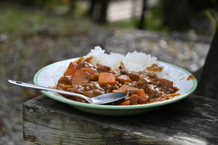 青空の下で食べるカレーは格別の味。もちろん残さず全部いただきました!