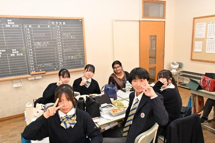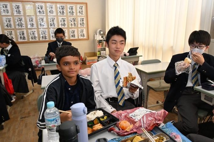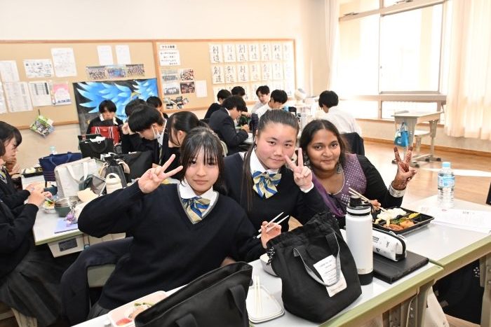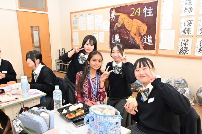 お弁当は本校のバディの生徒と一緒に食べ、午後は本校の授業に参加してもらいました。