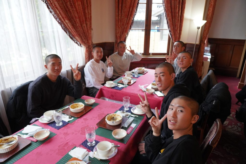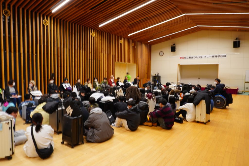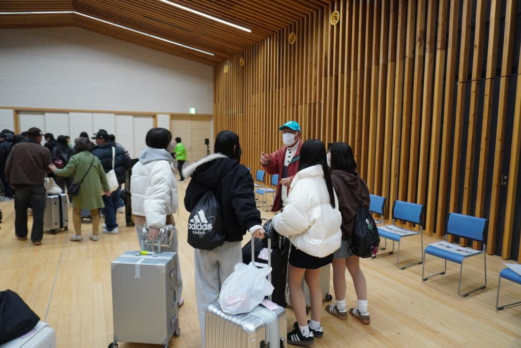 その後、バスで大分県宇佐市安心院(あじむ)へ向かい、民泊の地域に入りました。入村式では、受け入れてくださるご家庭の皆さまと対面し、温かく迎えていただきました。生徒たちは緊張した表情もありましたが、一人ひとりがしっかりと挨拶をしていました。