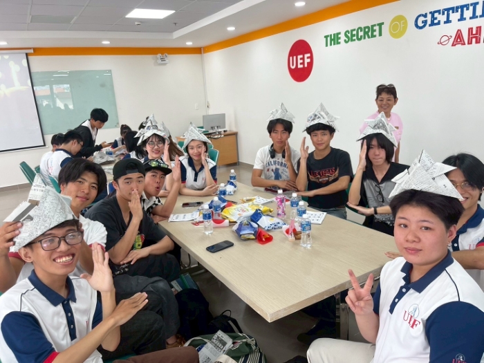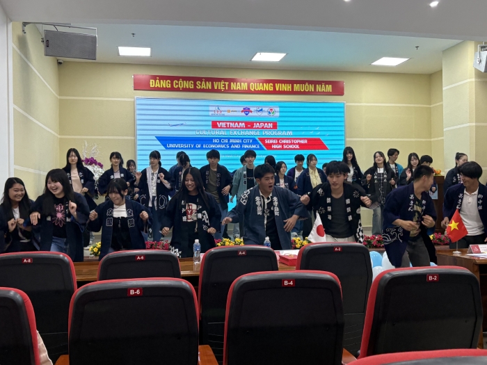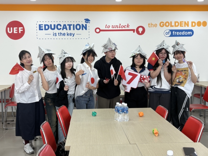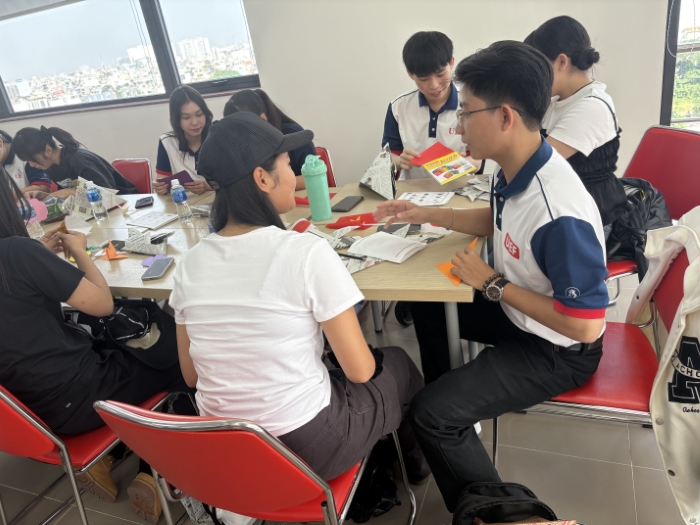3日目の今日はホーチミン市金融経済大学にお邪魔しました。とても素敵な歓迎会を開いてくださり、私たちは直前まで練習した、よさこいソーラン節を披露!その後、グループに分かれて折り紙や新聞紙を使ってカブトや鶴を折って交流しました。 午後はカンボジアに移動します。