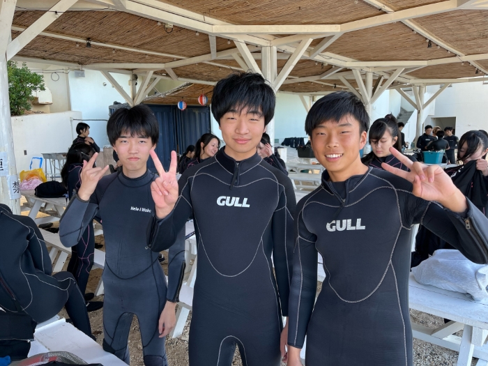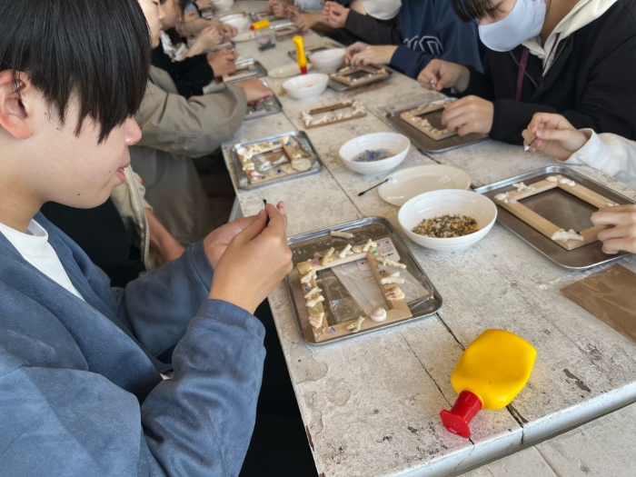 この時期にも海に入ることができる貴重な機会で、生徒たちは南国ならではの体験を満喫しました。貝殻などを使ってつくったフォトフレームは、この研修旅行の中でも特に思い出深い作品になったようです。