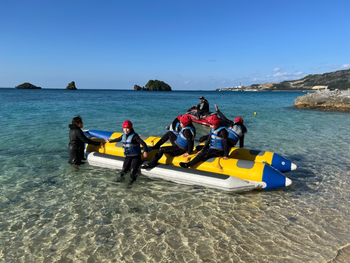 朝食後、ホテル前のビーチでマリン体験とフォトフレーム製作を行いました。