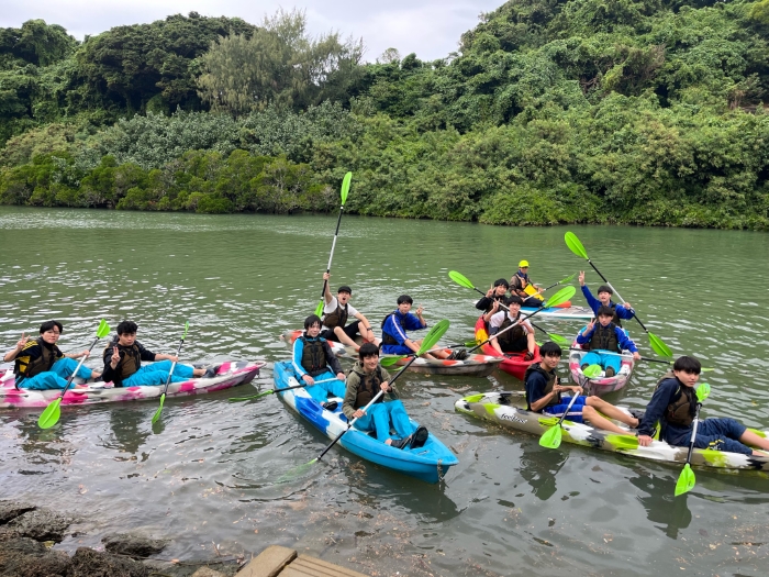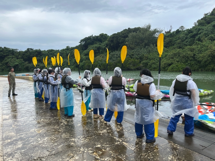 午後は比謝川でマングローブカヤック体験を行いました。体験前には雨が降り、中止の可能性もありましたが、直前で雨が上がり予定どおり実施することができました。前日のマリン体験に続き、沖縄の豊かな自然を全身で感じる貴重な時間となりました。