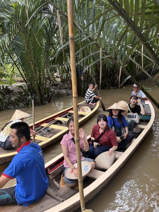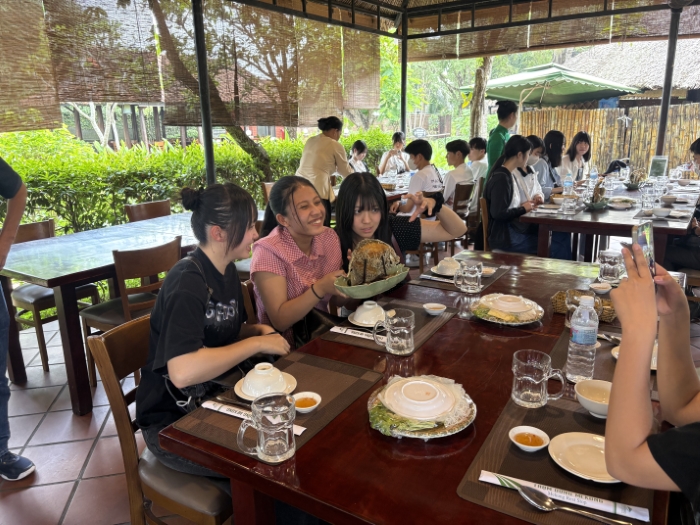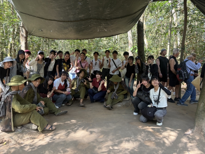 海外コースは6日早朝、浜松を出発し、最初の訪問国・ベトナムのホーチミンに到着しました。初日は市内観光、翌7日はベトナム戦争の傷痕を残すクチトンネルを訪問し、戦時中のクチの人々の生き方を学びました。午後はメコン川クルーズを楽しみました。