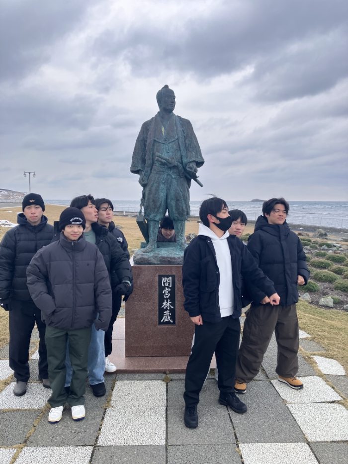 到着後は 宗谷岬 を訪問。日本最北端ならではの澄みきった空気と広大な景色を堪能しました。寒さの中でも、生徒たちは北海道に来た喜びで笑顔があふれ、記念撮影を楽しむ姿が見られました。