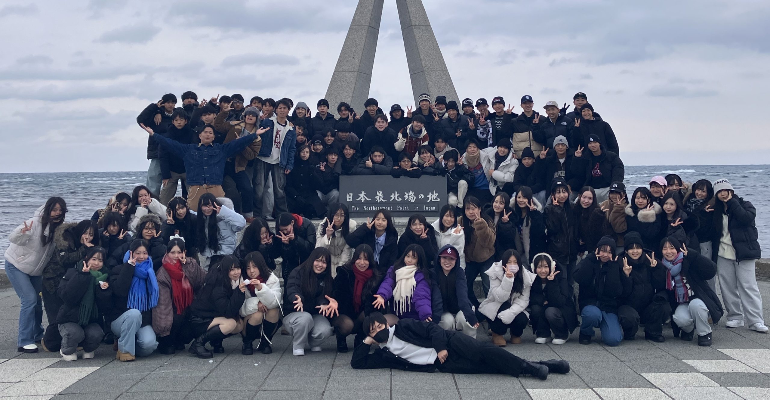 到着後は 宗谷岬 を訪問。日本最北端ならではの澄みきった空気と広大な景色を堪能しました。寒さの中でも、生徒たちは北海道に来た喜びで笑顔があふれ、記念撮影を楽しむ姿が見られました。