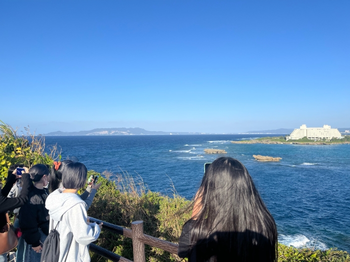 最後に訪れた 万座毛 では、沖縄の海を一望しながら、先人たちが守り継いできた美しい自然を全身で感じることができました。