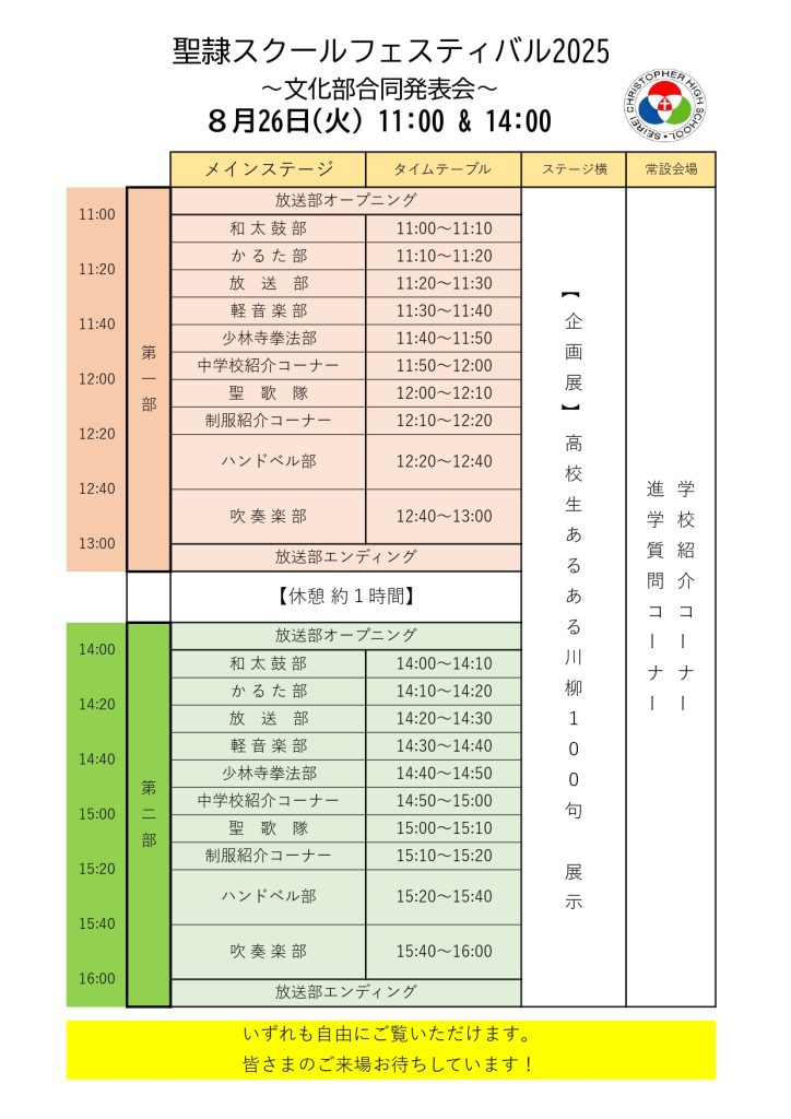 聖隷クリストファー高校の文化部が一堂に会する「聖隷スクールフェスティバル2025」のご案内です。