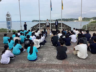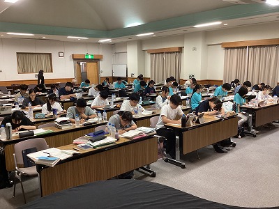 7月29日(火)から二泊三日で、英数科勉強合宿を行いました。場所は浜名湖に面した三ケ日青年の家で英数科301HRと302HRの63人が参加しました。夜は22時消灯で朝は6:30起床、浜名湖のさわやかな早朝の風を感じながら朝の集いも行いました。日中は12時間もの長い間勉強に集中し、大変有意義な時間を過ごすことができました。
