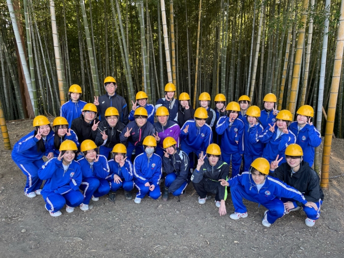 201HRは1月14日と1月20日の2日間、202HRは1月15日と1月22日の2日間で、竹林労作を行いました。地域貢献の一環として、地域の自治会・西部農林事務所の方々のご協力のもと、西区神久呂地区の竹林で竹の伐採や搬出作業などの竹林整備に取り組みました。本校では2017年度より、この竹林の整備・作業に労作授業の一環として参加しています。