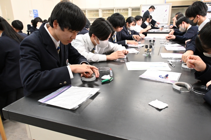 3月4日(水) 3・4時間目、中学3年生の理科の授業で、静岡大学の矢永先生と静岡県エネルギー・環境懇談会の成瀬先生をお招きして、放射線に関する授業と簡易霧箱や放射線測定器による放射線の観察実験をしていただきました。