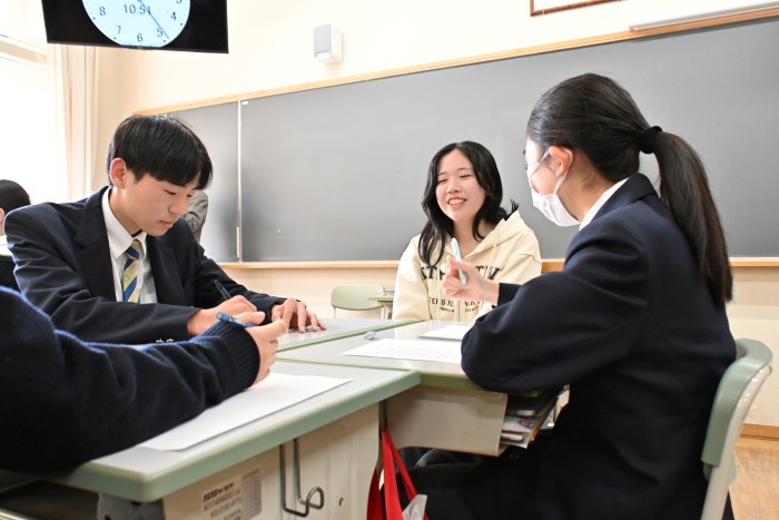 いよいよ受験本番まで1年を切った高校2年生は、受験を経験した先輩たちに様々な質問を積極的に投げかけていました。高校3年生からは、部活動や生徒会活動と受験勉強を両立する方法、実際に大学のキャンパスを見学することの大切さや見学時のポイント、最後まであきらめないこと、自分のやりたいことをしっかり見極めることなど、実体験に基づいた熱いアドバイスが送られました。