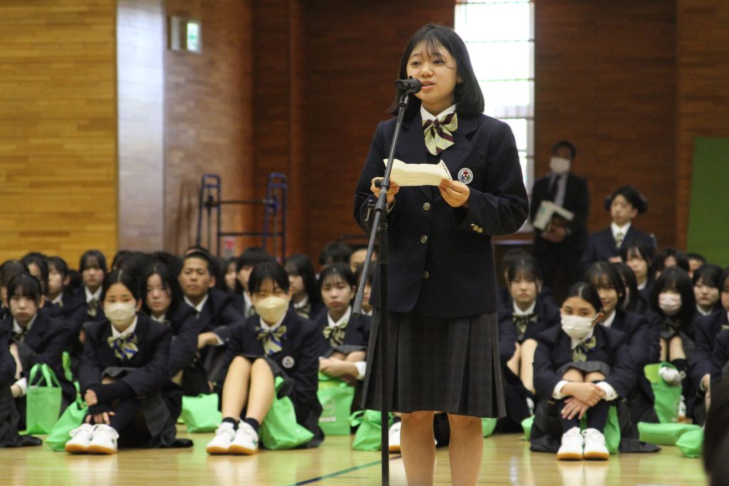 生徒は、本校での学びを通して自己を確立し、生命と人格を大切にする人間としてのあり方を身につけ、「人のために役立つ」愛の生き方を将来の進路に結びつけ「たくましい実践力」の持ち主になることを目指します。