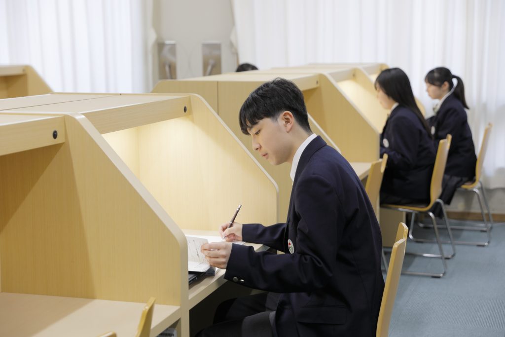 A.個別ブース型(全42席)の専用自習室を完備。中高生なら誰でも利用することができます。私語厳禁の集中学習空間で平日は19時まで利用できるので、隙間時間や放課後を有効活用できます。職員室に隣接しているので、分からない問題はすぐに質問できるのも魅力です。