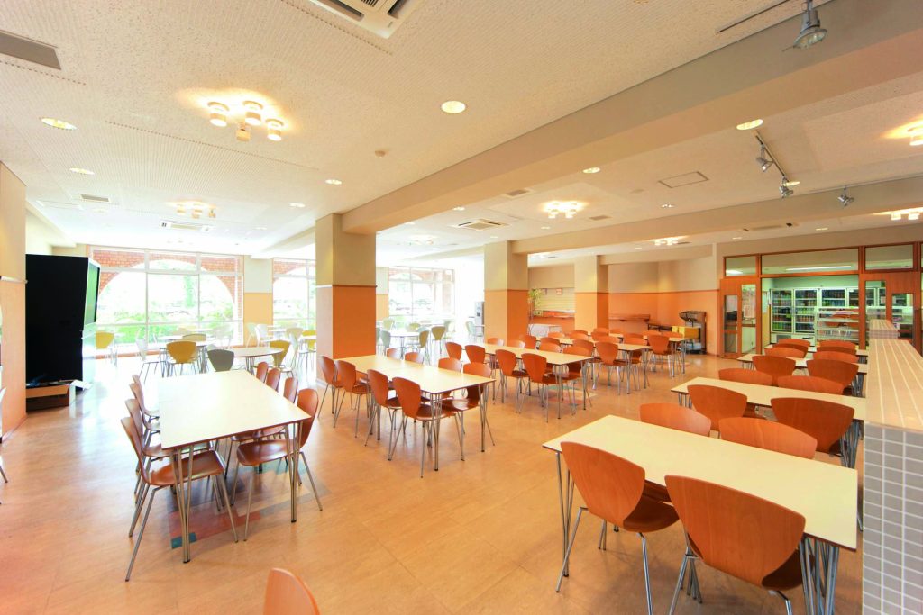 A.カフェテリア(食堂)ではお弁当・揚げたてカレーパンや、からあげ・フライドポテトなどのホットスナックも食券販売しています。また、売店ではパン・サラダ・ジュース・軽食や文房具なども販売しています。放課後も営業していますので部活前も利用できます。ジュースの自動販売機や給茶器もあります。