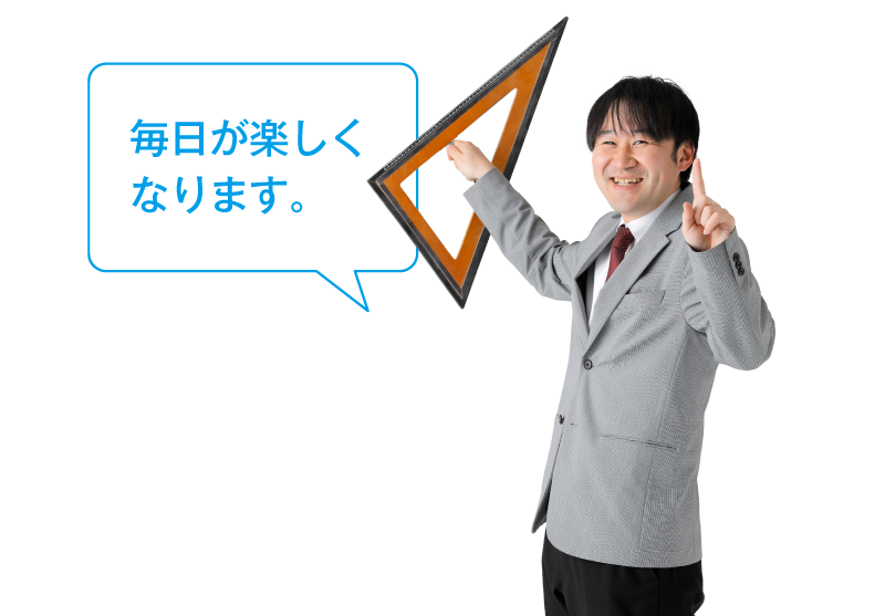 数学を好きになると、毎日が楽しくなります。中学では数学の授業が、ほぼ毎日あるから。まずは解ける喜びを感じてください。するともっと解きたくなって、誰かに教えたくなって、更に実力が付いていきます。こうなればもう大丈夫!そうなるために、基礎・基本となる計算能力は大切です。繰り返し問題を解いて力を伸ばしましょう。万が一、つまずいても安心してください。分かるまで丁寧に指導します。