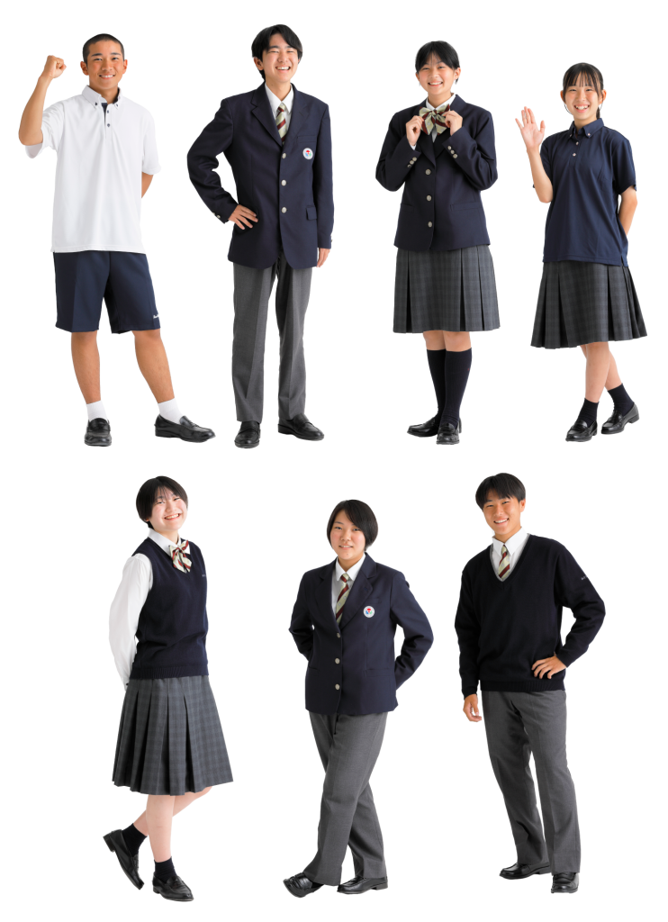 毎日着る制服も、大切な学習環境のひとつ。 いつも快適に、自信を持って学べるよう配慮されています。近年の気候変化に対応し、必要に応じてポロシャツやハーフパンツで活動できる体制も整えており、柔軟で先進的な取り組みが行われています。