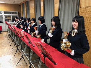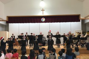 ハンドベルは今から400年程前にイギリスの教会で生まれた楽器で、その美しい響きは天使のハーモニーと呼ばれています。文化祭や花の日礼拝、クリスマス礼拝などの校内行事での演奏や、地域施設への訪問演奏などを行っています。讃美歌だけでなく、クラシックからポップス、ディズニーの曲など、幅広いレパートリーの曲を演奏しています。